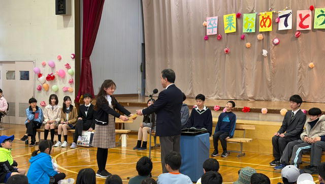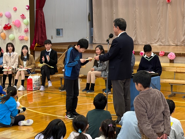 卒業式ではありません。まおい流の「卒業を祝う会」として、5年生以下の実行委員会がすべて企画から運営まで行いました。