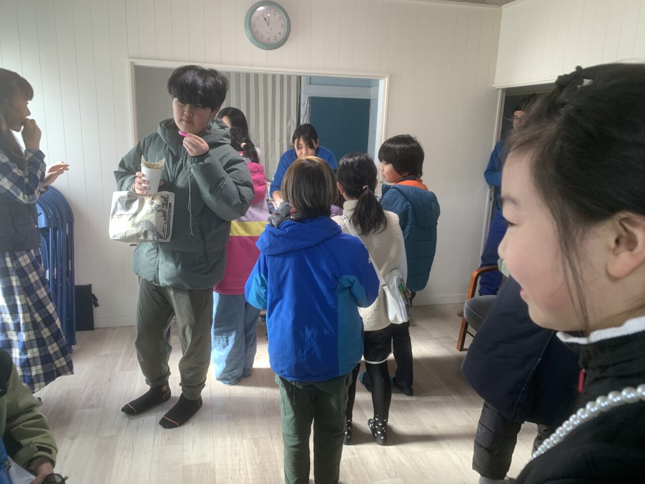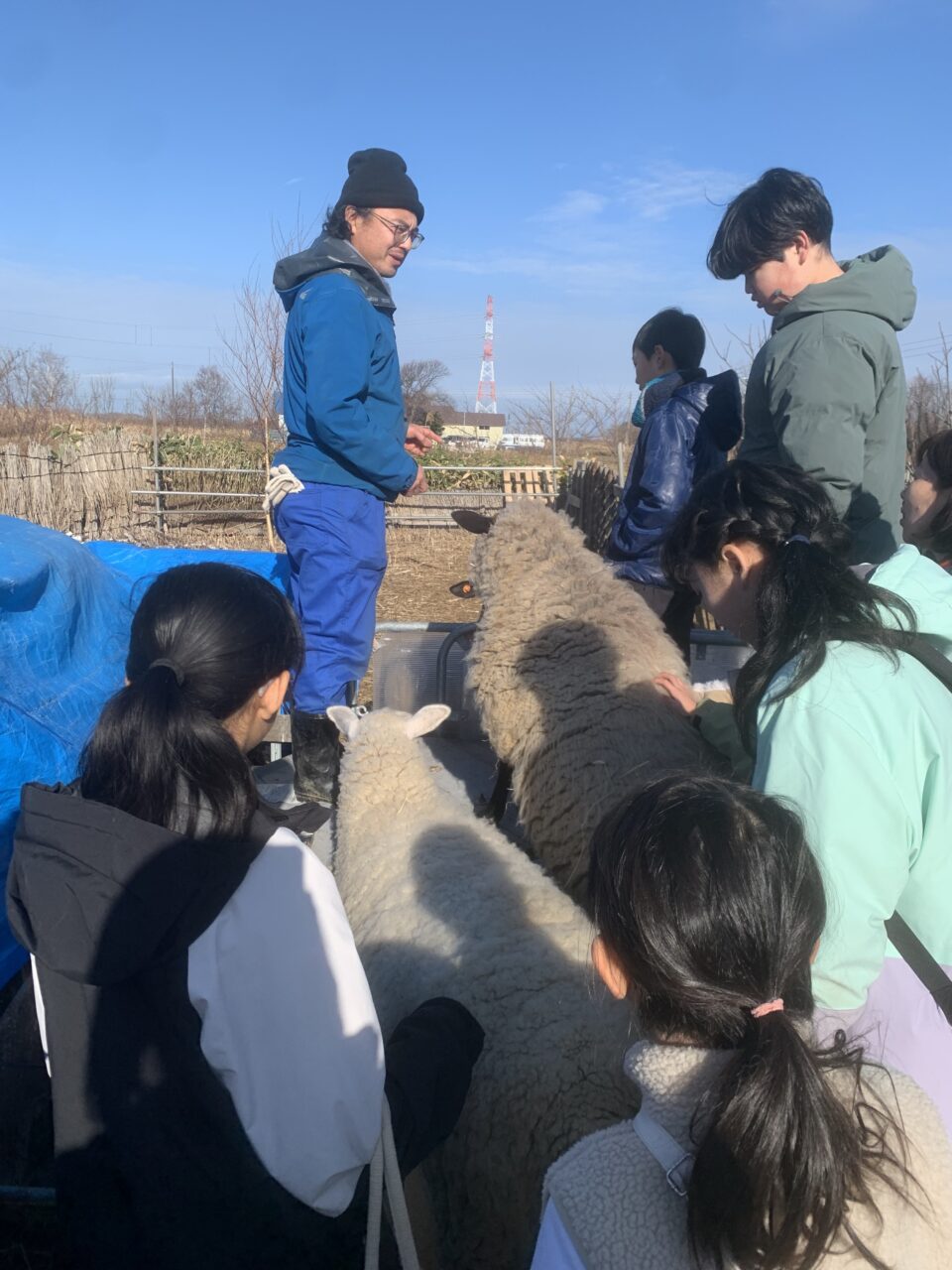 石狩生振のあおいまきばへ演劇プロジェクトのみんなで行ってきました。あおいまきばには、春に羊のチョコちゃん・ミルクちゃんを学校に連れてきてくれたウールさん(漆原さん)がいます。今回はウールさんに「羊のハニーちゃんを屠畜場に連れていったときのこと」のお話を伺いました。手がかかった子だからこそ思い入れがあったことや、ハニーちゃんのお肉を食べるときの気持ちなど聞かせていただきました。羊に関する学習の一環でしたが、羊に限らず自分の今の生活にも直結する内容で、みんな真剣に話を聞いていました。子どもたちの中で「ヴィーガンの人の気持ちが少しわかった」と言っている子もいました。